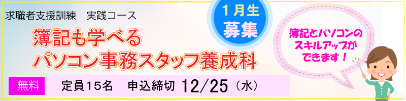 ★令和2年1月30日開講 求職者支援訓練 募集がスタート!